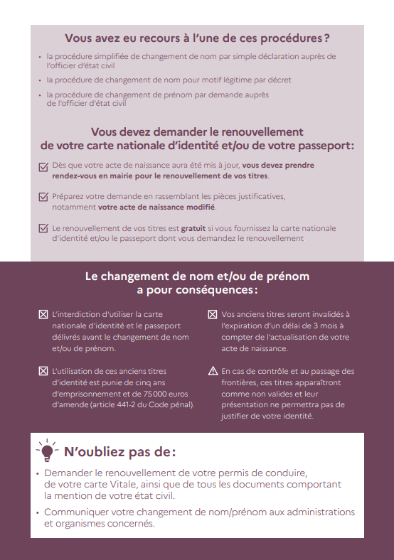 Renouvellement CNI et passeport suite à changement de nom ou de prénom